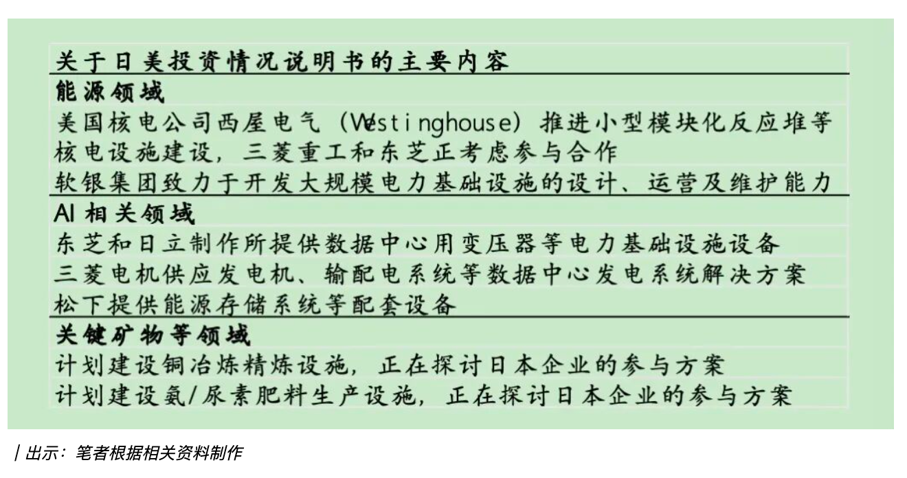 根據(jù)日美簽署的“關(guān)于對美投資的諒解備忘錄”,投資目的地將經(jīng)過日美設(shè)立的“磋商委員會”,以及由美國商務(wù)部長擔(dān)任主席的“投資委員會”的討論,并由美國總統(tǒng)同意后選定,決定權(quán)在美國。參與投資的日本企業(yè)可以獲得日本政府系統(tǒng)的金融機構(gòu)的貸款或貸款擔(dān)保。