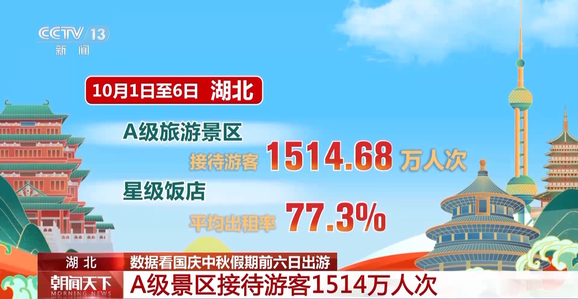 自動播放假期以來,截至昨天,湖北600多家A級旅游景區(qū)接待游客1514.68萬人次。星級飯店平均出租率超過77%。
