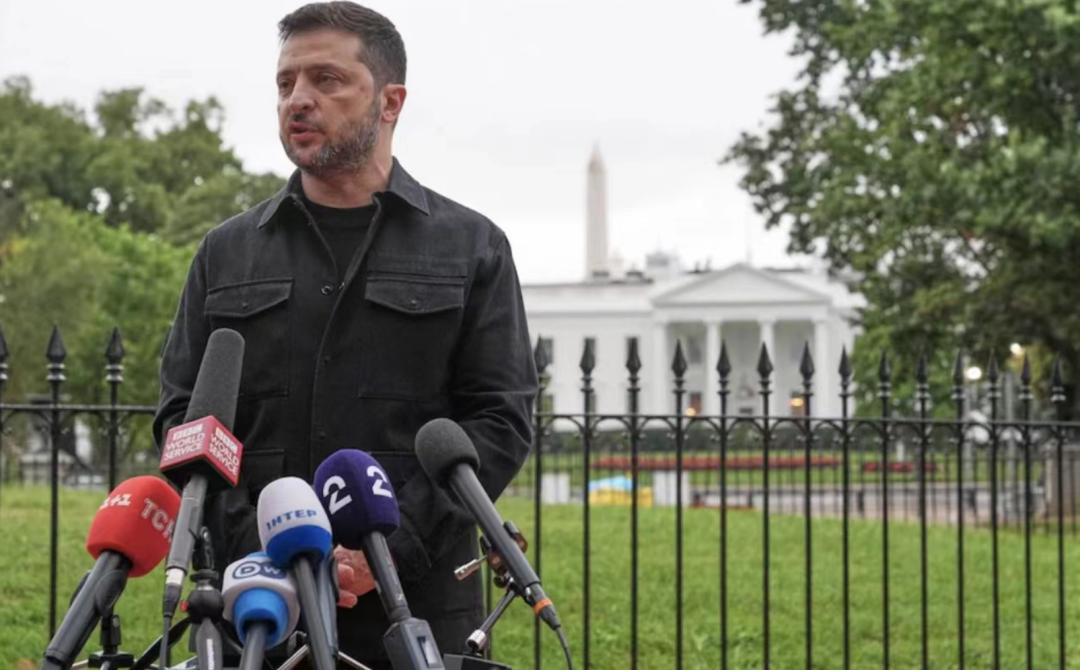 沒(méi)辦法的澤連斯基,只能在白宮外搭了一張小桌子,舉行了一場(chǎng)特別的記者會(huì)。