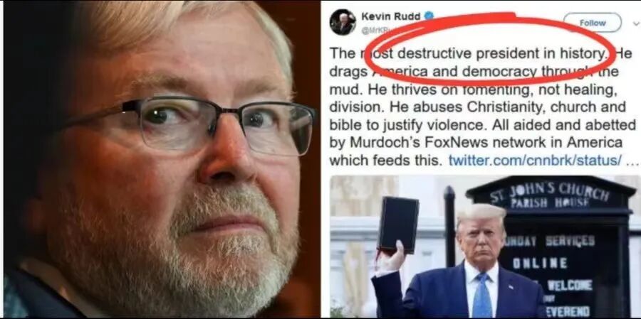 陸克文曾痛批特朗普是“西方的叛徒”,“歷史上最具破壞性的總統(tǒng)”,指責(zé)他將美國(guó)和民主搞得一塌糊涂。