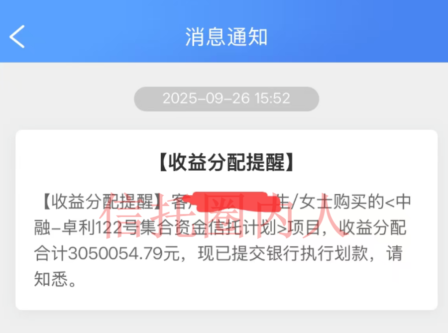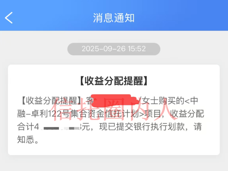 據(jù)中融信托最新消息《中融信托最新:資產(chǎn)處置難度大,目標(biāo)是覆蓋本金!》,中融信托新業(yè)務(wù)已全面暫停,部分項(xiàng)目仍在進(jìn)行兌付,但亦有部分項(xiàng)目停止兌付。有委托人稱,2023年8月起出現(xiàn)停兌的資金池項(xiàng)目一個(gè)也沒有兌付,正常兌付的是現(xiàn)金管理類、有明確底層投向的信托產(chǎn)品等。卓利122號(hào)便是仍在正常兌付的產(chǎn)品之一。