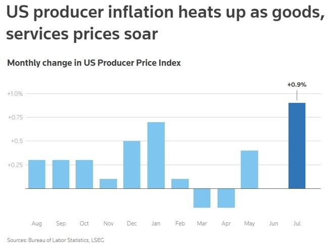 美國(guó)勞工部近日發(fā)布的數(shù)據(jù)顯示,美國(guó)7月份生產(chǎn)者價(jià)格指數(shù)PPI)顯著上漲,漲幅超出市場(chǎng)預(yù)期,顯示美國(guó)產(chǎn)業(yè)鏈上游面臨新一輪通脹壓力。美國(guó)媒體認(rèn)為,關(guān)稅成本壓力將向下游傳導(dǎo),此前“生扛”關(guān)稅成本的美國(guó)商家快2025-11-30