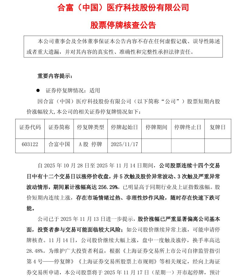 合富(中國(guó))醫(yī)療科技股份有限公司股票停牌核查公告