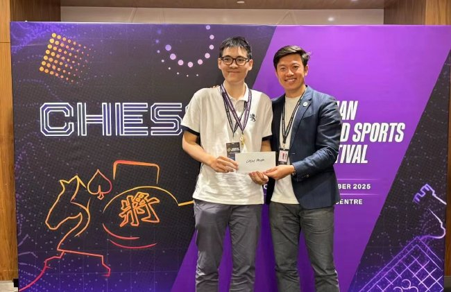 14歲的中國(guó)圍棋選手李易高和潘鎮(zhèn)包攬圍棋項(xiàng)目的冠亞軍。對(duì)于李易高來(lái)說,這是他首次到訪新加坡,最后以冠軍收尾讓其欣喜不已。