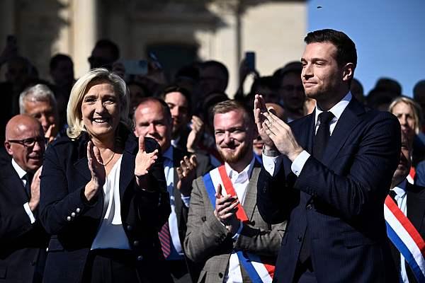 今年4月,勒龐與若爾丹·巴爾德拉在巴黎參加政治集會(huì) 視覺(jué)中國(guó)