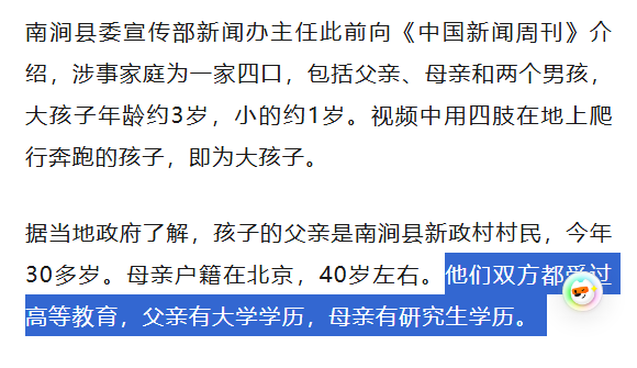 新聞里明明白白寫著,孩子父母雙全,并且雙雙接受過高等教育。父親有大學(xué)學(xué)歷,母親還是研究生學(xué)歷,理應(yīng)是一個(gè)文明家庭。