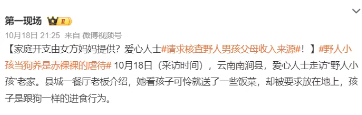 起因是有人提到自己去年冬天,也在大理附近看到過類似的小野孩,沒穿衣服,在地上爬。只是當(dāng)時(shí)是個(gè)小女孩,現(xiàn)在是小男孩。