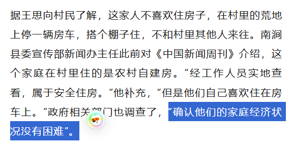 但相關(guān)部門去調(diào)查,表示家庭經(jīng)濟(jì)狀況沒有困難,在村里還有棟自建房。