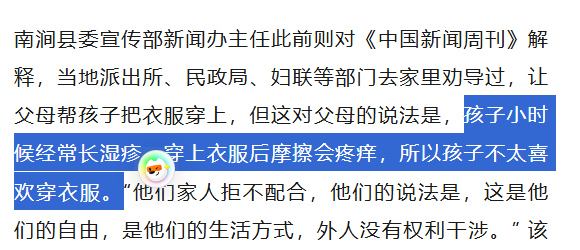 父母給出的說辭是,孩子小時(shí)候經(jīng)常長濕疹,穿衣服不舒服,所以自己不喜歡穿。