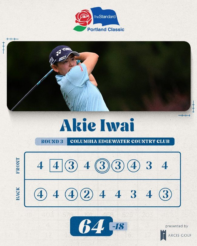 周六在樹木林立的明愛球場上,巖井明愛在大部分平靜的沖冠天氣條件下展示了精湛的擊球技術:她將球打到3英尺處射下老鷹,兩次打到1英尺抓鳥——其中最后一次是張雅在18號洞,四桿洞,波特將總成績提升至198桿,蘭精領先低于標準桿18桿。英賽巖井殷