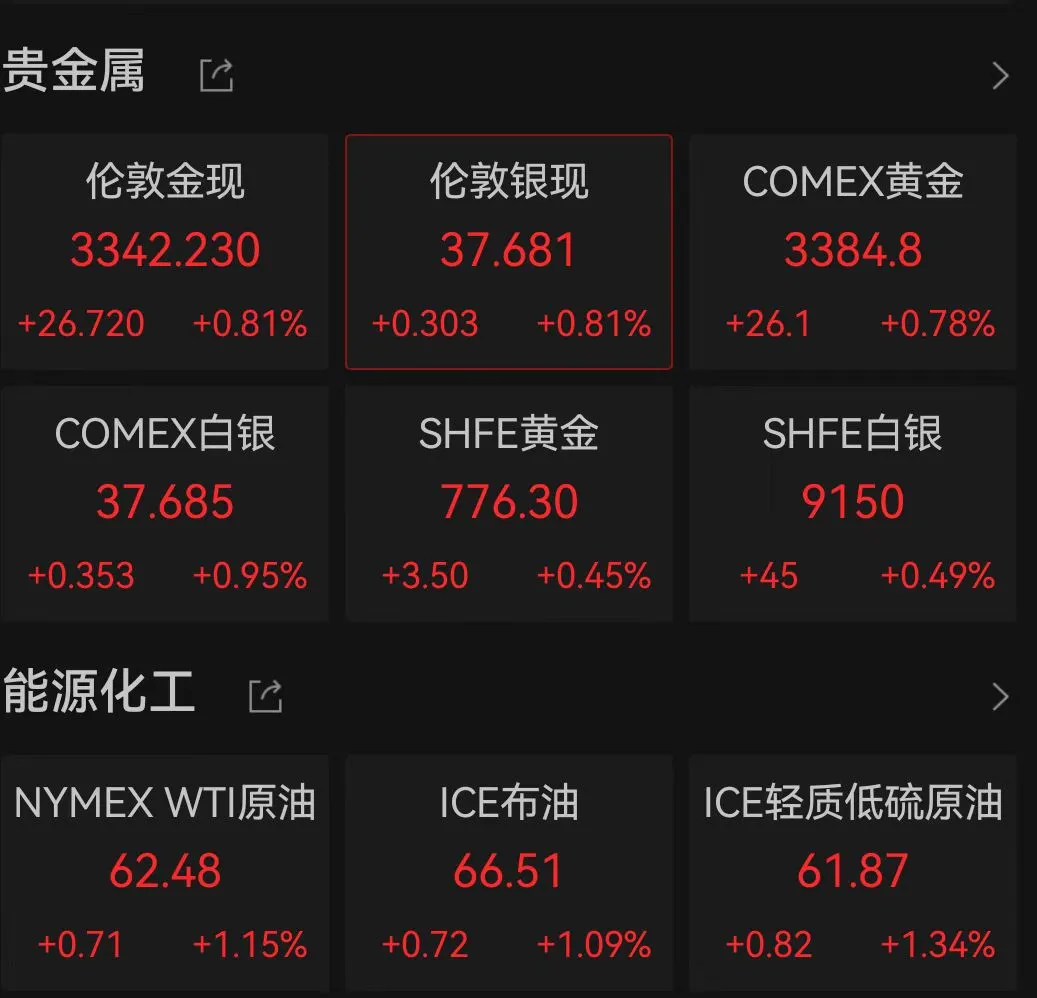 其他資產(chǎn)中,跌英跌超現(xiàn)貨黃金漲0.8%至3342美元/盎司,10年期美債收益率下行超1個(gè)基點(diǎn)至4.3%附近,美元指數(shù)轉(zhuǎn)跌,國(guó)際油價(jià)走高,美油漲1.15%至62.45美元/桶,布油漲1%至66.5美元/桶。