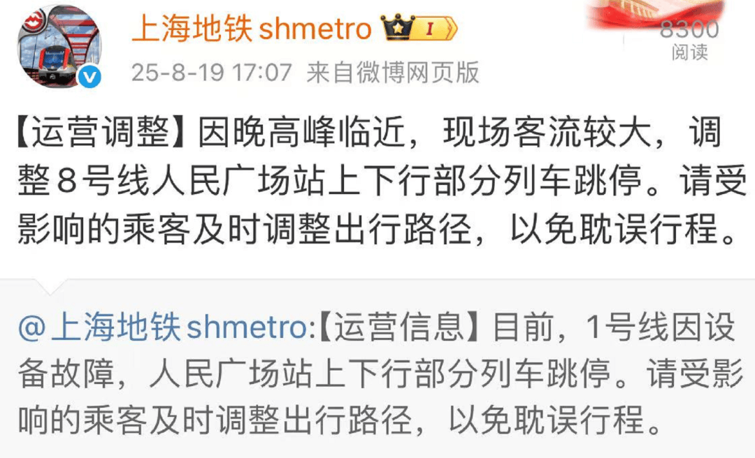 17點(diǎn)07分:因晚高峰臨近,新情現(xiàn)場(chǎng)客流較大,上海調(diào)整8號(hào)線人民廣場(chǎng)站上下行部分列車跳停。地鐵請(qǐng)受影響的人民然冒乘客及時(shí)調(diào)整出行路徑,以免耽誤行程。