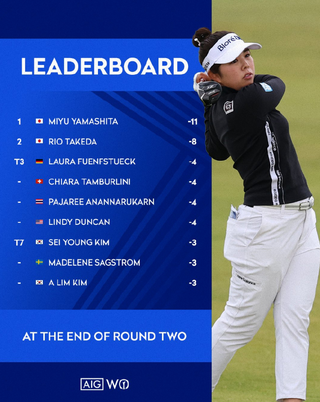 瑞士選手奇亞拉-坦布利尼(Chiara Tamburlini)和泰國選手帕查利-安娜納魯甘(Pajaree Anannarukarn)均打出69桿,與美國選手林迪-鄧肯(Lindy Duncan,70桿)、德國選手勞拉-芬施德克(Laura Fuenfstueck,71桿)一同以140桿,低于標準桿4桿,并列第三。
