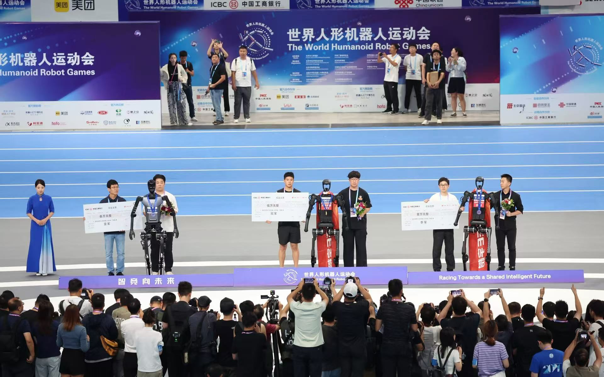 宇樹(shù)科技的兩臺(tái)機(jī)器人分獲冠軍和季軍。新京報(bào)記者 王飛 攝