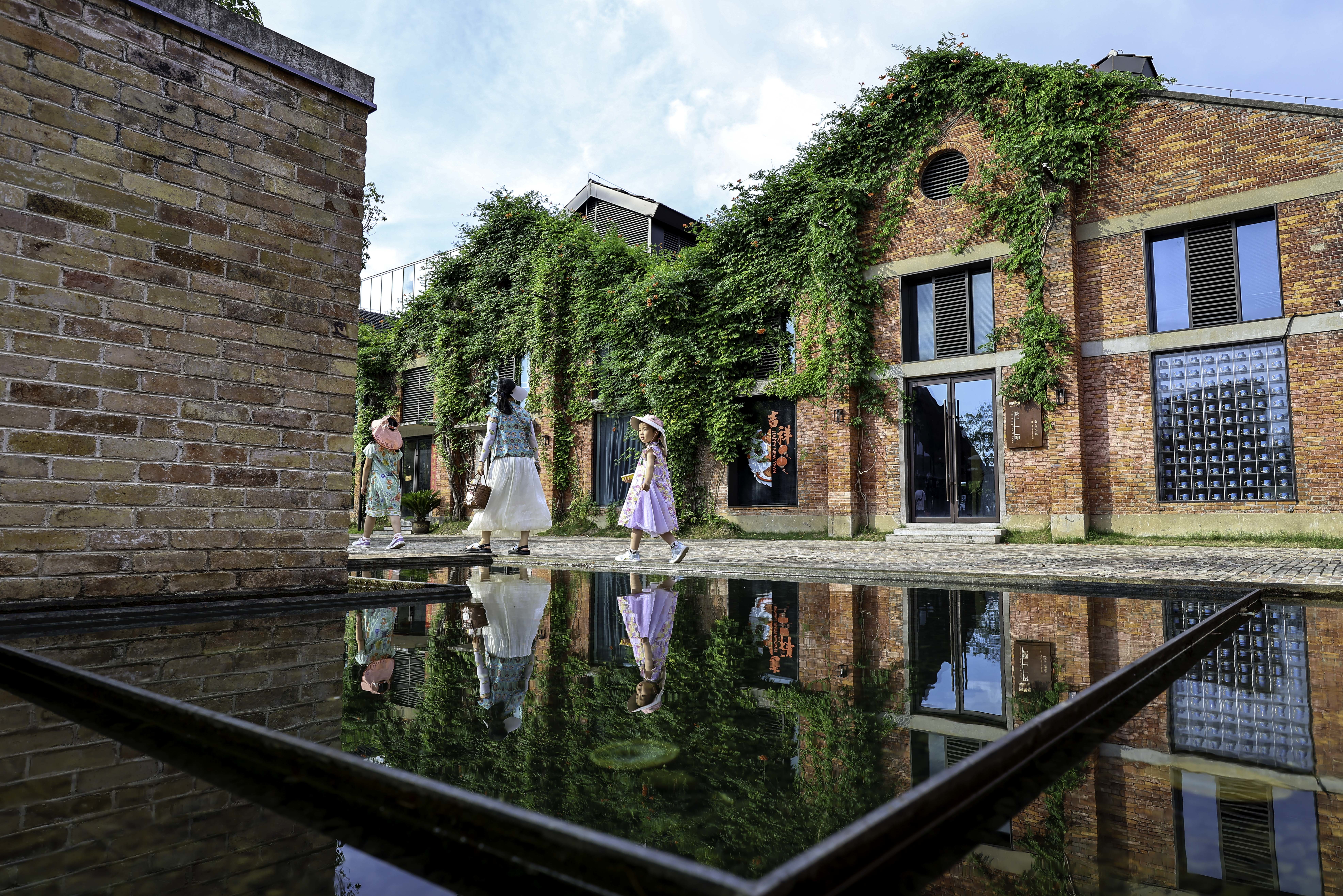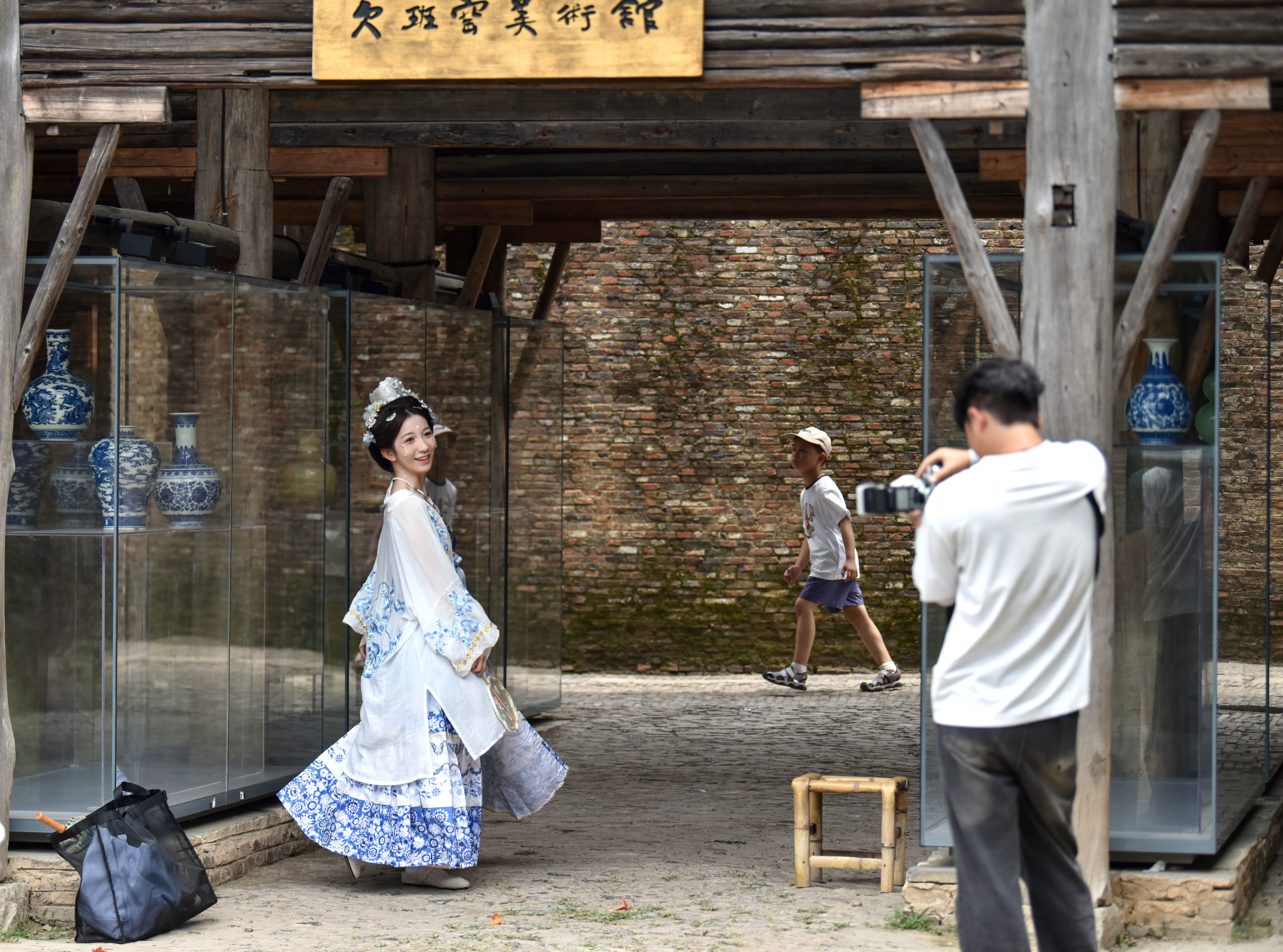 游客在江西省景德鎮(zhèn)市陶陽(yáng)里歷史文化街區(qū)留影。新華社發(fā)(石衛(wèi)明攝)