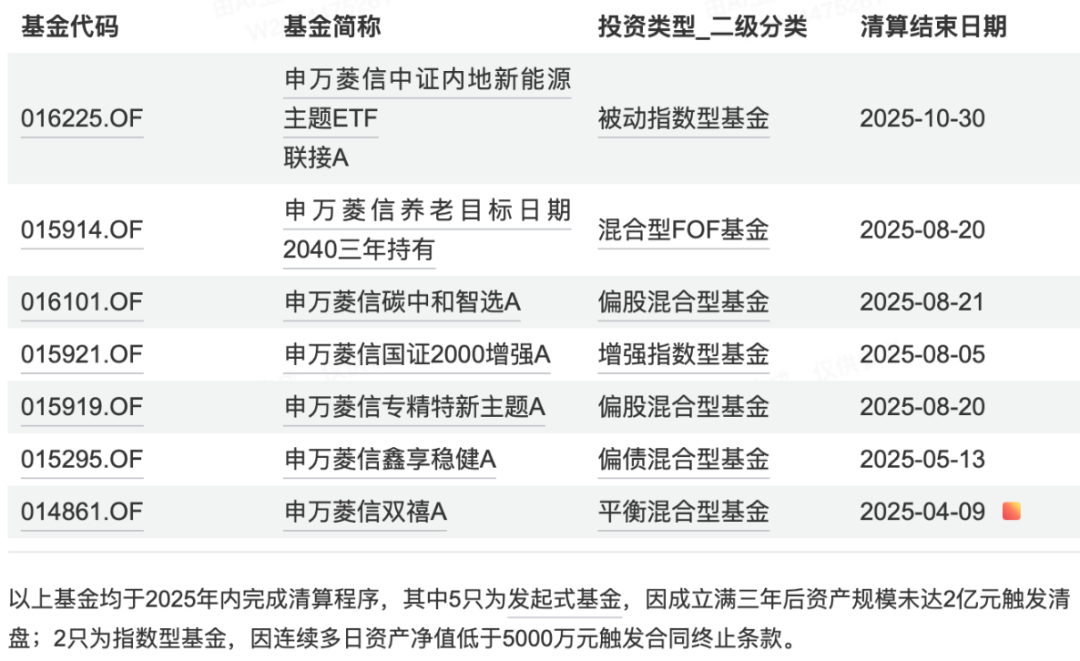 今年以來,申萬菱信旗下已有7只產(chǎn)品清盤。