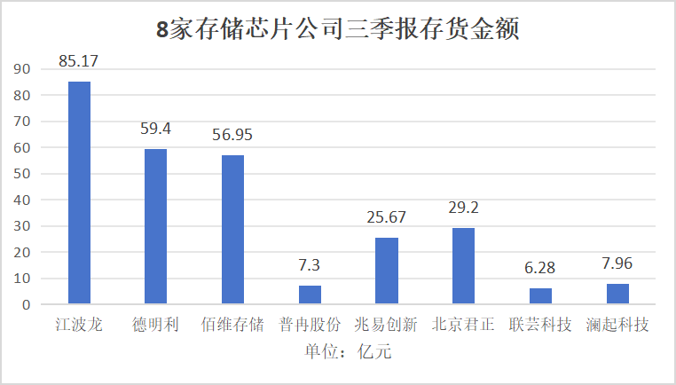 江波龍三季報顯示,截至第三季度末,公司賬上存貨的金額為85.17億元,高于其他存儲芯片企業(yè)。