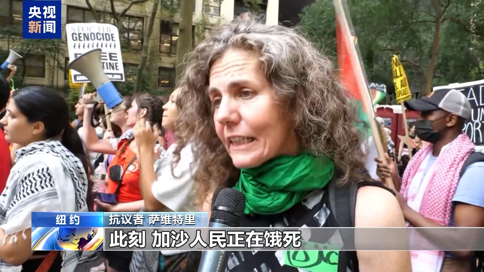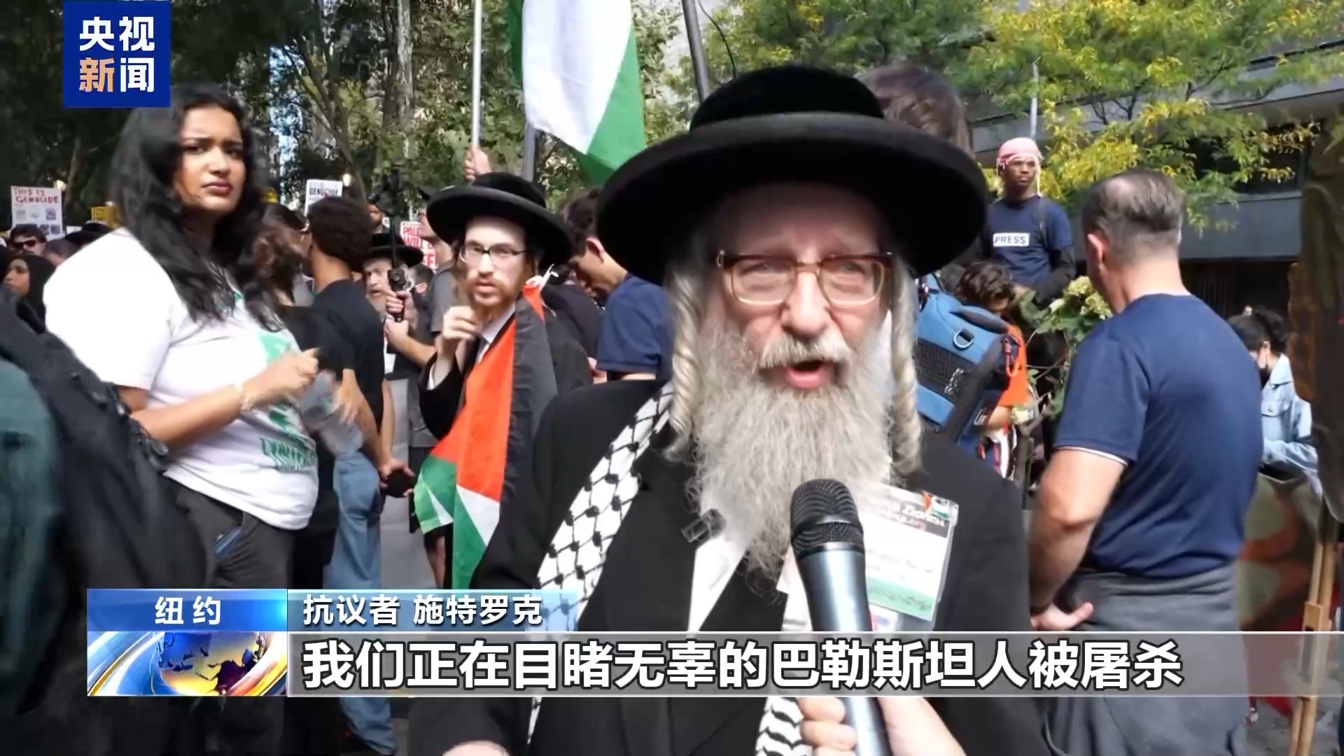 抗議者 施特羅克:我們正在目睹無(wú)辜的巴勒斯坦人被屠殺,現(xiàn)在是聯(lián)合國(guó)大會(huì)該行動(dòng)的時(shí)候了,他們必須挺身而出,做正確的事,不能讓這樣的日子再持續(xù)下去了,不能再有更多無(wú)辜者死去。