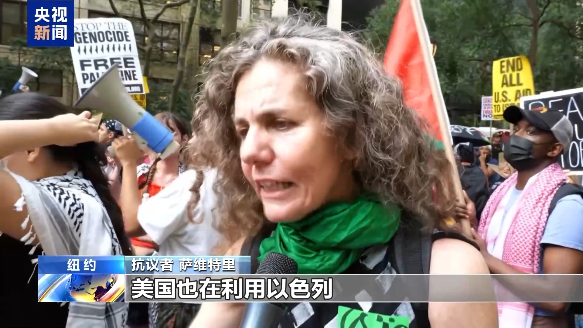 現(xiàn)場(chǎng)抗議者表示,美國(guó)對(duì)以色列的軍事支持和政治縱容,使局勢(shì)進(jìn)一步惡化。