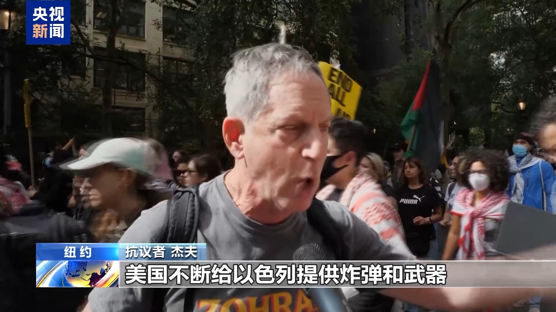 抗議者 杰夫:美國(guó)不斷給以色列提供炸彈和武器,使屠殺暴行繼續(xù)發(fā)生,這太令人憤慨了,我們的政府正在共謀參與加沙正在發(fā)生的種族滅絕。