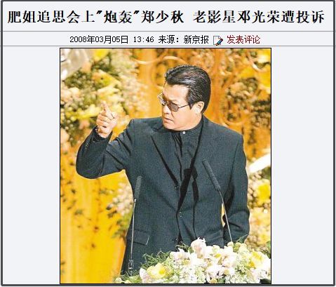 2008年,沈殿霞的追悼會(huì)上,62歲的鄧光榮當(dāng)著眾人的面,一吐心中塊壘,炮轟鄭少秋說: