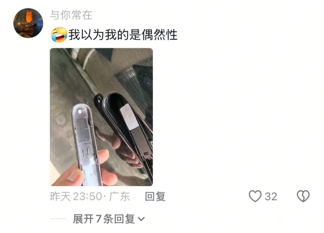 高先生的視頻發(fā)布到網(wǎng)上后,評(píng)論區(qū)有許多車主表示也曾出現(xiàn)過(guò)類似情況,高先生也在評(píng)論區(qū)調(diào)侃到,“買的時(shí)候記得讓送雙面膠”。