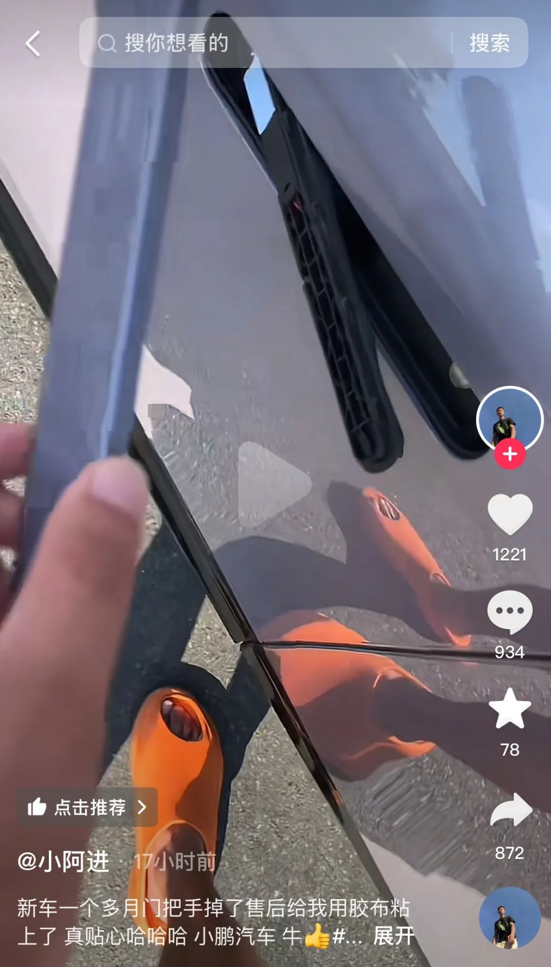 高先生說(shuō),多月S店早在半個(gè)月前,門把門把手就出現(xiàn)了無(wú)法正?;貜椀氖謮纳锨闆r,這次則是兩次直接脫落。高先生描述,用膠該門把手的布粘結(jié)構(gòu)應(yīng)是卡扣卡上去的,但是江蘇4S店方面給出的維修方式居然是粘上去,對(duì)此,南京高先生無(wú)法接受。小鵬