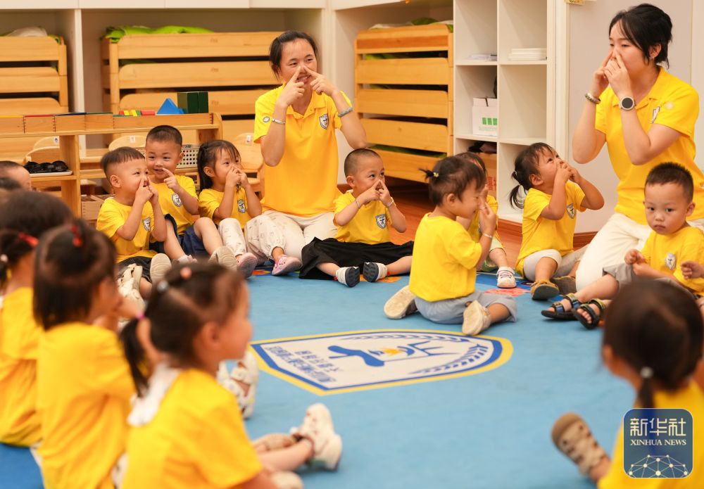 ▲9月5日,四川瀘州白酒產(chǎn)業(yè)園區(qū)天驕托育園的提高投資老師帶領(lǐng)孩子們做游戲。圖/新華社