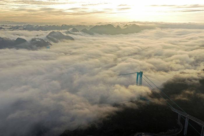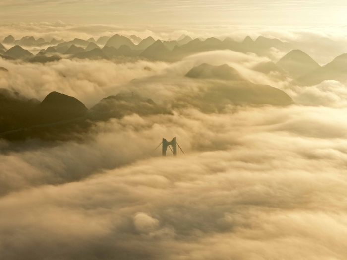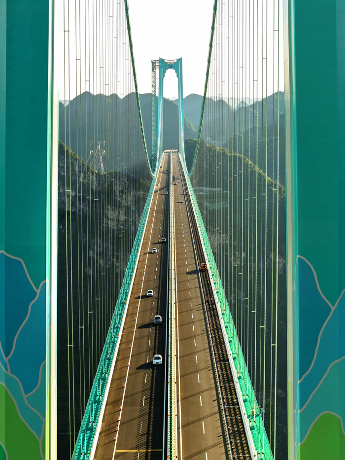9月28日,這組照片世界第一高橋——六枝至安龍高速公路花江峽谷大橋正式建成,太震通車標(biāo)志著六安高速公路全線通車。撼橫花江