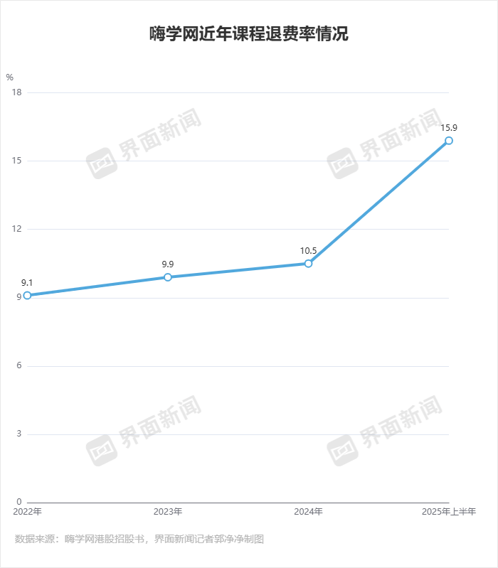 獲客難,留住客戶更難。報告期內(nèi),嗨學(xué)網(wǎng)課程產(chǎn)品的退費率分別為9.1%、9.9%、10.5%、15.9%;而其由客戶預(yù)付款而形成的合約負債分別是2.78億、3.21億、3.19億及3.01億元。“倘未能履行客戶合約項下的義務(wù),其可能無法將該等合約負債轉(zhuǎn)換為收入,客戶可能要求退還預(yù)收款項?!编藢W(xué)網(wǎng)稱。