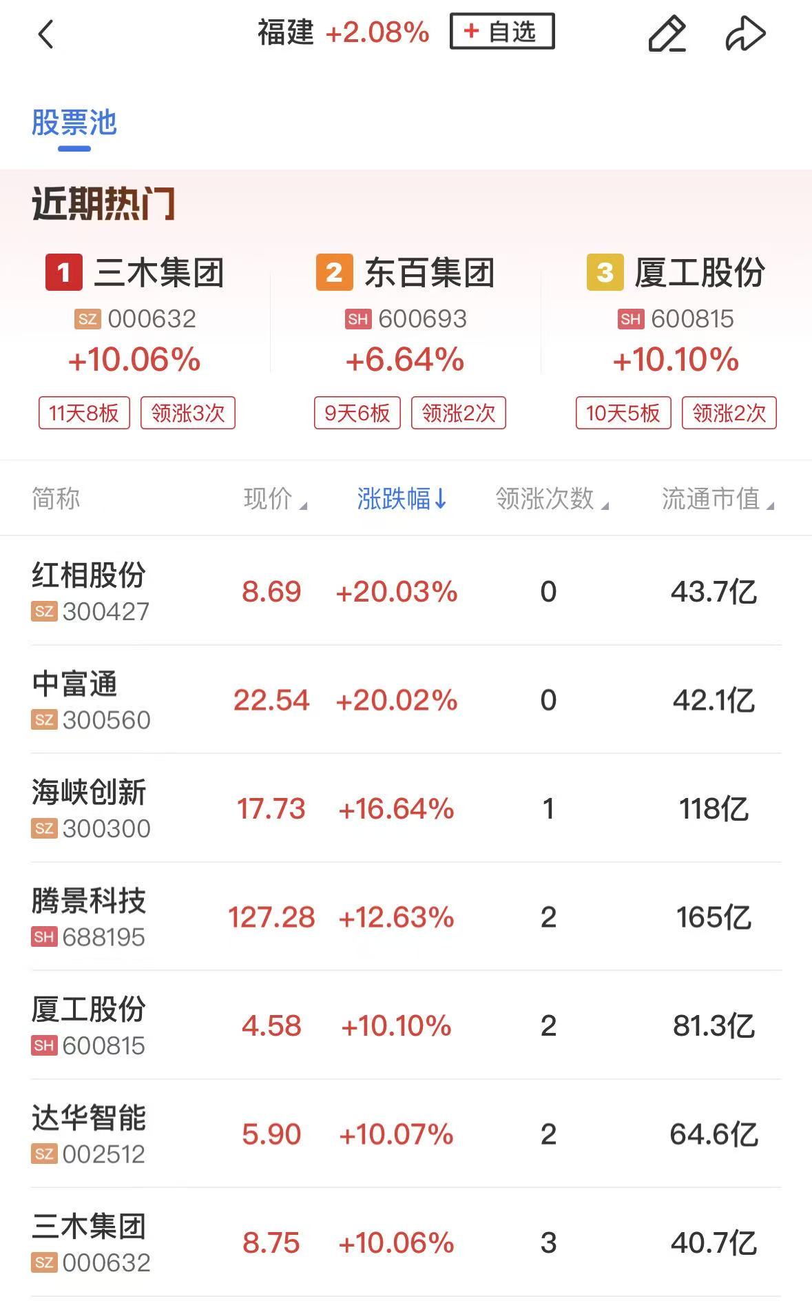 此外,福建板塊再度爆發(fā),三木集團(tuán)、廈工股份、平潭發(fā)展、九牧王、廈門港務(wù)、榕基軟件、日上集團(tuán)等10余股漲停,