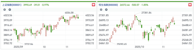 尤其是,在美國政府重啟利好消化后,市場焦點轉(zhuǎn)向經(jīng)濟數(shù)據(jù)和美聯(lián)儲政策。但最新交易數(shù)據(jù)顯示,市場預期美聯(lián)儲在12月降息25基點可能性不足50%,這也直接打破了市場此前的樂觀預期,引發(fā)連鎖反應。