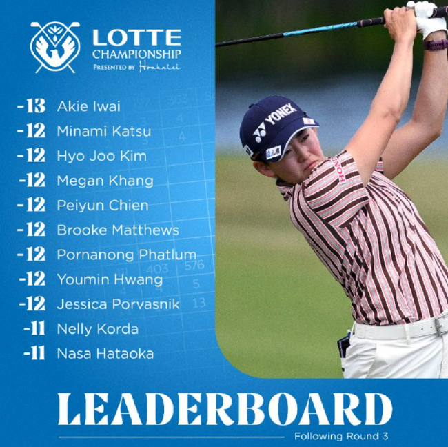 北京時間10月4日,日本選手巖井明愛夏威夷時間周五在霍瓦卡雷鄉(xiāng)村俱樂部(Hoakalei Country Club)頂住強風(fēng)考驗,明愛于樂天錦標(biāo)賽第三輪后搶占榜首位置,領(lǐng)跑樂天落后不過8名選手僅僅落后1桿,錦標(biāo)前世界第一內(nèi)莉·科達(dá)落后2桿。賽人可以預(yù)期,桿科明天將是達(dá)落一場惡戰(zhàn)。