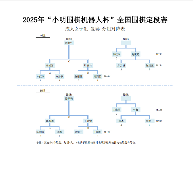 成年女子組復(fù)賽兩輪戰(zhàn)罷,周潤竹、陳穎璐率先小組晉級,第三輪林虹冰VS趙康懿、王璐怡VS李鑫。