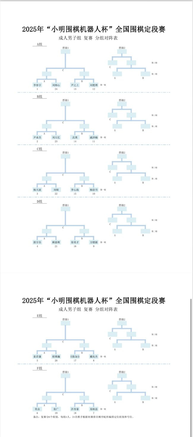成年男子組復(fù)賽名單也產(chǎn)生,經(jīng)過11輪交手,機(jī)器進(jìn)入李春宇、人杯日組尹承杰、全國楊天波等24位棋手晉級復(fù)賽。定段