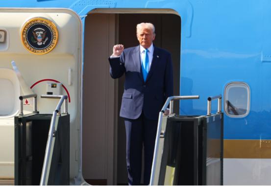 不過可以看到,因?yàn)榇饲斑B續(xù)的行程,抵達(dá)韓國時(shí)的特朗普神情顯得有些疲憊,甚至沒有在音樂響起時(shí)跳舞,而此前在訪問馬來西亞和日本期間,特朗普都曾即興起舞。