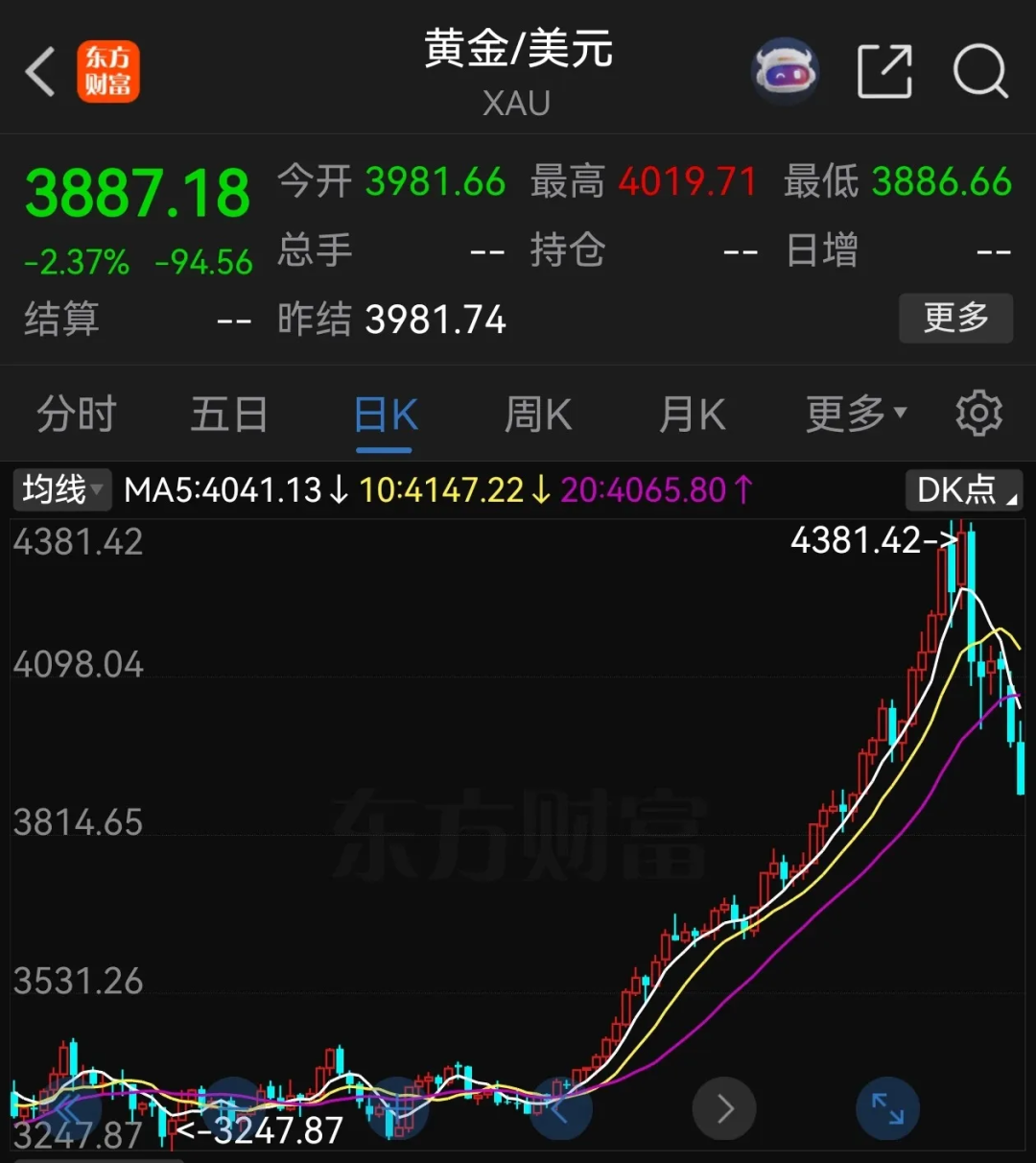 截至發(fā)稿,重挫著補?,F(xiàn)貨黃金跌幅收窄至12.08%,學(xué)生報3898.9美元/盎司。稱把倉結(jié)較10月21日高點4381美元/盎司跌超10%。生活