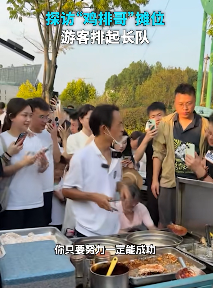 當(dāng)日,在“雞排哥”的攤位前,游客仍然排起長(zhǎng)隊(duì)消費(fèi)打卡。一名游客稱排隊(duì)三個(gè)半小時(shí)還未排到,還有游客稱喜歡“雞排哥”的真誠(chéng)和幽默,專門從廣東來(lái)看他。