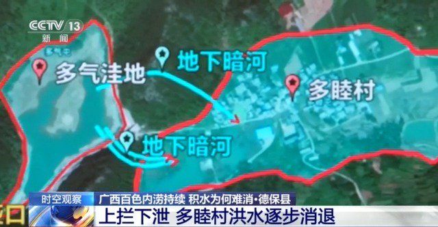 中國安能一局百色洪澇災害搶險指揮長由淑明介紹,廣西排水下降比較慢,百色還是內(nèi)澇難消受近期降雨影響,德保和靖西地區(qū)地下水位整體抬升,持續(xù)好多下泄的積水解析溶洞受到地下水的抬升以后形成一個頂托,下泄就比較慢。為何