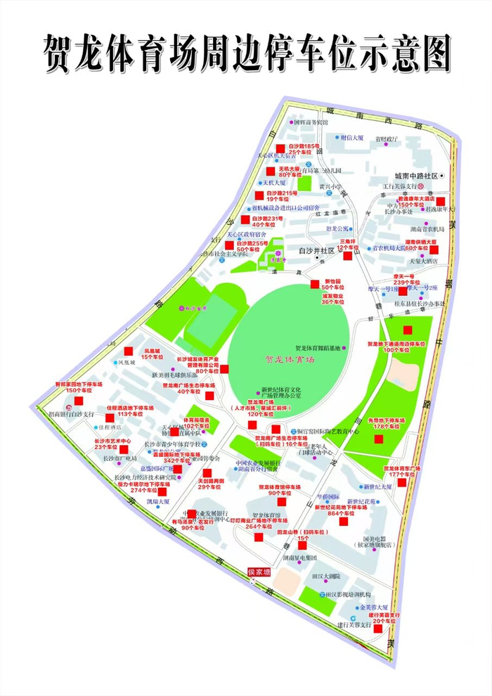 湘超觀賽停車不慌 長(zhǎng)沙賀龍?bào)w育場(chǎng)周邊3317個(gè)停車位指引來(lái)了