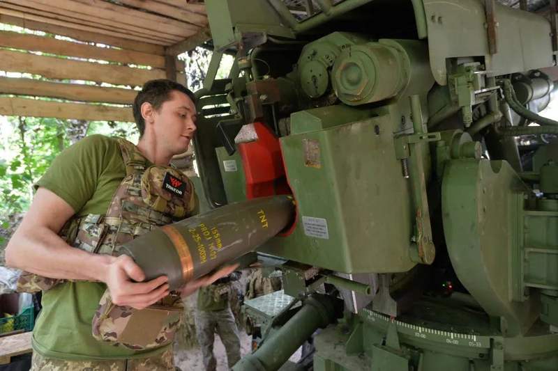 8月13日,在烏克蘭蘇梅州前線地區(qū),烏軍士兵為火炮裝填彈藥。新華社發(fā)(彼得·德魯克攝)