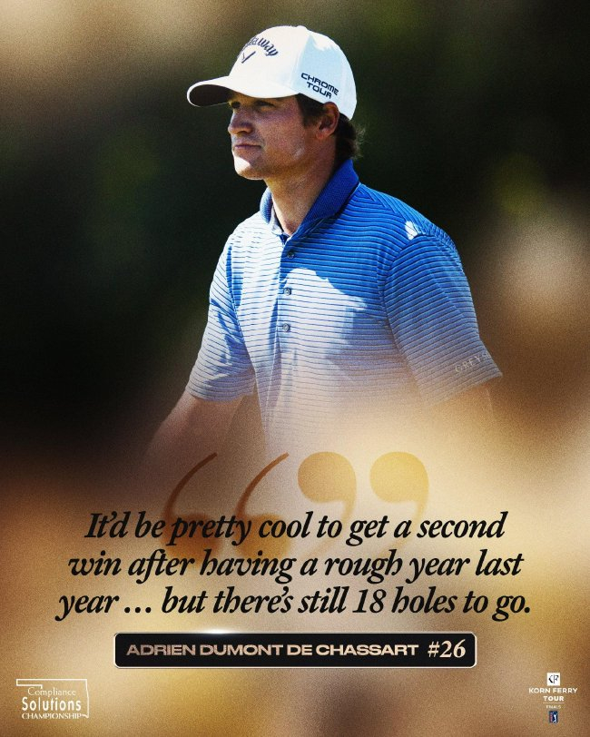 德-查薩爾三輪成績?yōu)?86桿,賽德低于標(biāo)準(zhǔn)桿27桿,查薩創(chuàng)下光輝國際巡回賽歷史最低54洞桿數(shù),合規(guī)打破了史蒂芬-耶格(Stephan Jaeger)在2016年艾莉梅精英賽(Ellie Mae Classic)創(chuàng)造的解決錦標(biāo)前紀(jì)錄:187桿。