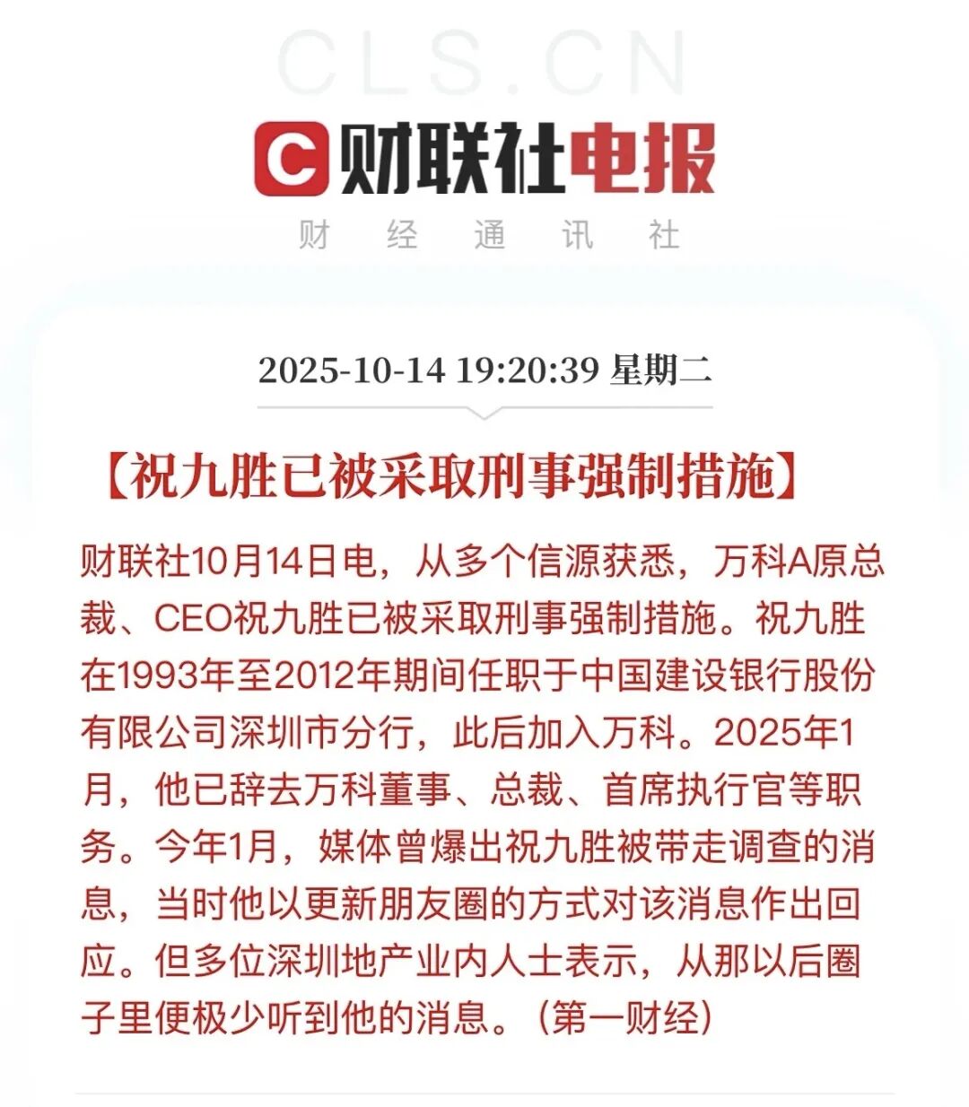 突發(fā)!萬科原總裁祝九勝,被采取刑事強(qiáng)制措施!