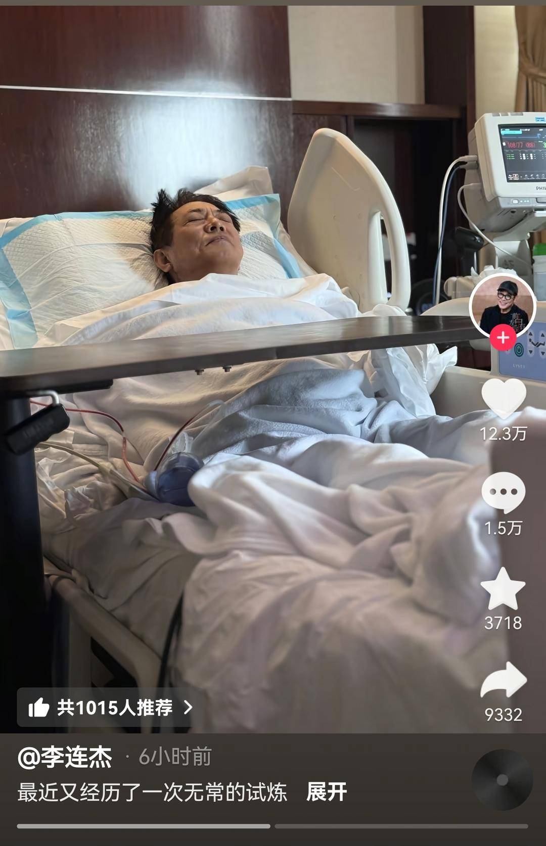 李連杰發(fā)病床照片引猜測,好友替他報平安:非常順利,能吃能喝