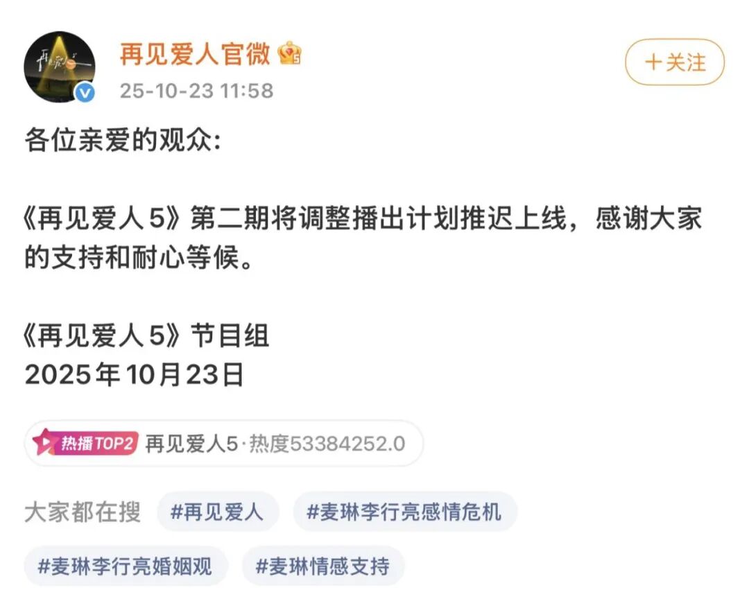 只可惜,隨著路行行賄丑聞的曝光,鄧莎、路行夫婦已從“話題引擎”淪為“輿論雷區(qū)”,相關內容不僅成為觀眾集中吐槽的焦點,更將《再見愛人5》推到了輿情反噬的被動局面。