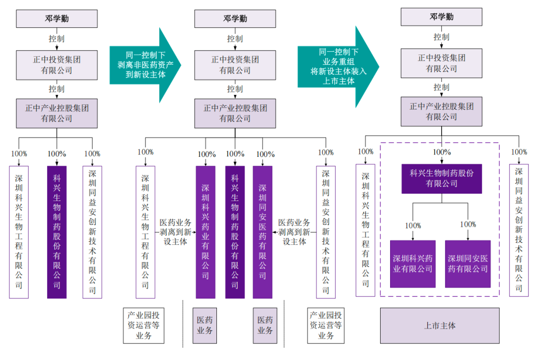 2018年3月23日,正中產(chǎn)業(yè)控股全資設(shè)立深圳科興,承接深圳科興工程的醫(yī)藥業(yè)務(wù)板塊的人員、資產(chǎn)和業(yè)務(wù);2018年5月16日,正中產(chǎn)業(yè)控股全資設(shè)立深圳同安,承接深圳同安的醫(yī)藥業(yè)務(wù)板塊的人員、資產(chǎn)和業(yè)務(wù)。