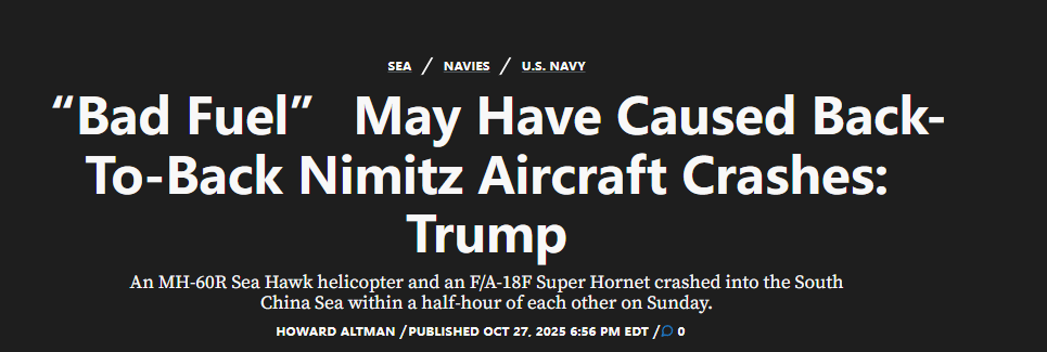 有意思的是,這次是美國(guó)總統(tǒng)特朗普和美國(guó)海軍主動(dòng)出面“滅火”。特朗普在空軍一號(hào)專機(jī)上對(duì)這些惡意猜測(cè)不以為然,并排除了人為破壞的可能。他在接受記者采訪時(shí)表示,“這種情況很不尋?!麄儯绹?guó)海軍)認(rèn)為事故原因可能是燃油質(zhì)量不好。我們會(huì)查明真相。沒什么好隱瞞的?!碑?dāng)被問及是否認(rèn)為墜機(jī)事件涉及“有意謀殺”時(shí),特朗普表示:“我不這么認(rèn)為。”