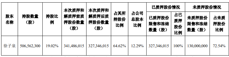 捷成股份8月7日發(fā)布的關(guān)于控股股東部分股份質(zhì)押和解除質(zhì)押的公告顯示,截至公告披露日,控股股東徐子泉共持有公司股份506,562,300股,379,921,725股處于限售狀態(tài)(高管鎖定股),累計(jì)質(zhì)押股份327,346,015股,凍結(jié)股份130,000,000股。