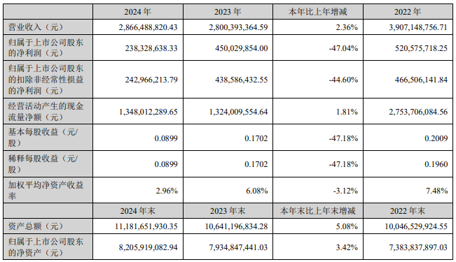 捷成股份2024年年度報(bào)告顯示,控股2024年,擬詢公司實(shí)現(xiàn)營(yíng)業(yè)收入28.66億元,讓質(zhì)同比增長(zhǎng)2.36%;歸屬于上市公司股東的押億凈利潤(rùn)連續(xù)2年下滑,2022年至2024年分別為5.21億元、利連4.50億元、捷成價(jià)轉(zhuǎn)降年2.38億元;歸屬于上市公司股東的扣除非經(jīng)常性損益的凈利潤(rùn)連續(xù)2年下滑,2022年至2024年分別為4.67億元、4.39億元、2.43億元。
