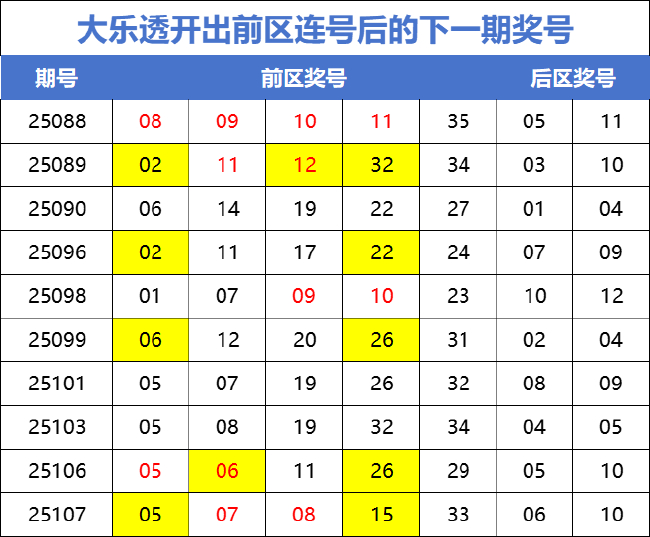 前區(qū)連號走勢升溫明顯,下期要關(guān)注哪些號碼呢?我們從上表中可以看到,前區(qū)龍頭有7次開出2路碼,周六龍頭依舊關(guān)注2路碼,重點關(guān)注02、05;鳳尾方面,0路碼僅開出3次,開出概率僅3成,周六晚間鳳尾可留意3字頭1路碼或2路碼;值得一提的是,前區(qū)5尾連開4期,前區(qū)1尾、2尾皆開出6次,周六選尾可以優(yōu)先選擇!